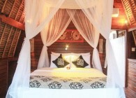 Room size 4 x 4 square meters complete with one double bed size 180cm x 200cm, mosquito net, Individual remote control air conditioning, semi open air bathroom with toilet, guest amenities, standing cool and hot shower and complimentary towel. Each hut has double bed with private balcony with great garden view. The Standard villas can accommodate single, couples or triple with extra bed