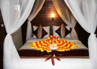 Each of this Villas is 12 square meters in size with Balinese style,coconut wooden wall with Balinese décor and design comfortable for two guest,furnished with a comfortable quen size bed and a cupboard,equipped with a ceiling fan,airconditioning,smallmattras for relaxing,cool and hot water,private semi open bath room.At the front of each villa is an elevated terrace,furnished two chair and a table oriented towards the nice pool and beautifully garden view.